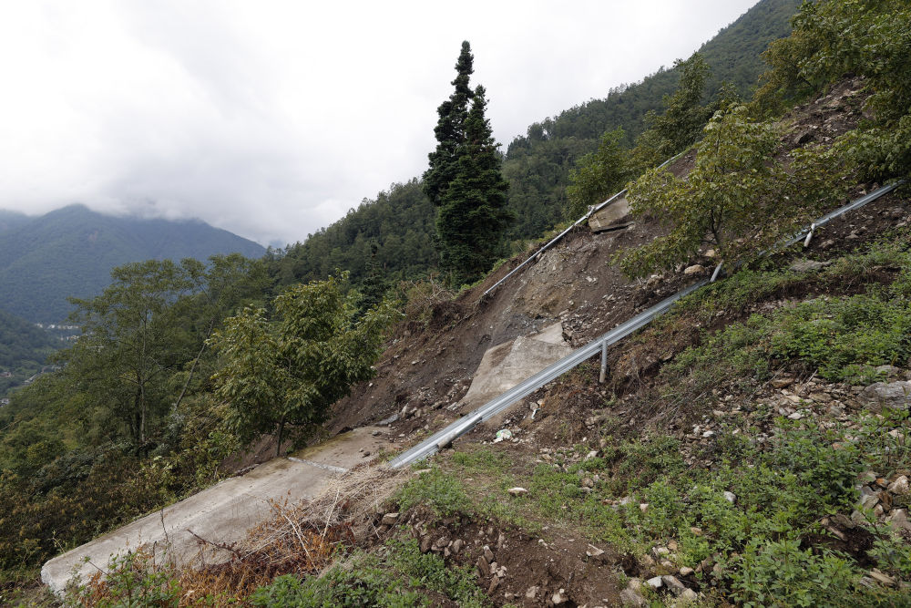 9月6日凌晨,通往得妥鎮(zhèn)的公路上,隨處可見震山體塌方后落下的碎石。