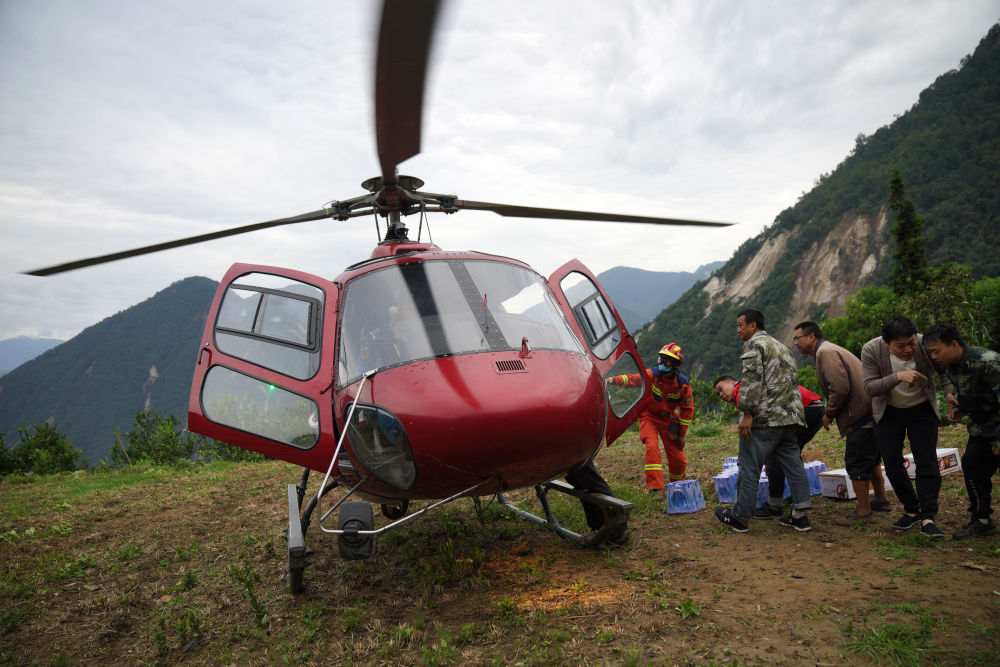 7日一早,我和同事從水路轉(zhuǎn)空路,搭乘滿載食品和帳篷等救援物資的直升機(jī)挺進(jìn)草科鄉(xiāng),彼時各類救援物資和通訊設(shè)備正陸續(xù)開始送往草科鄉(xiāng)及深山里的幾個村子。