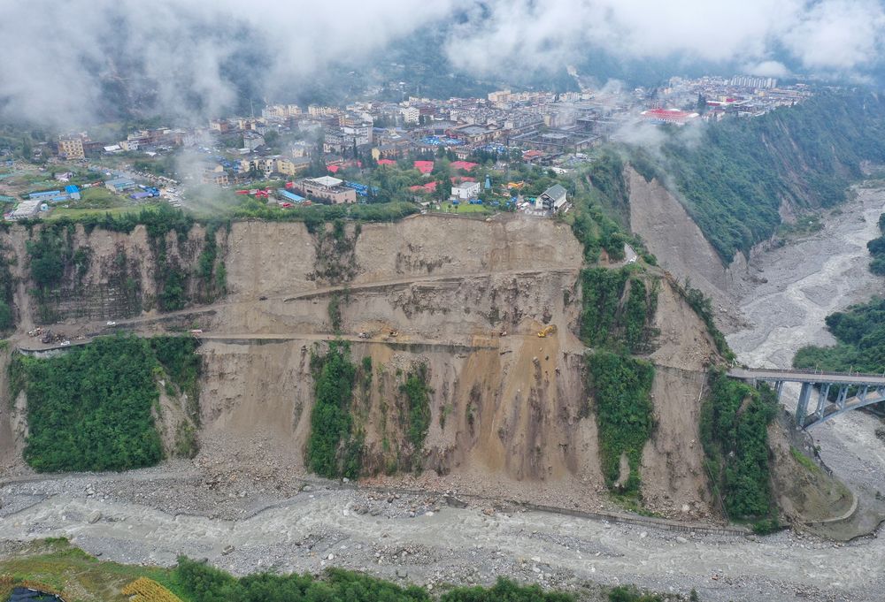 9月7日在王崗坪彝族藏族鄉(xiāng)拍攝的損毀道路。
