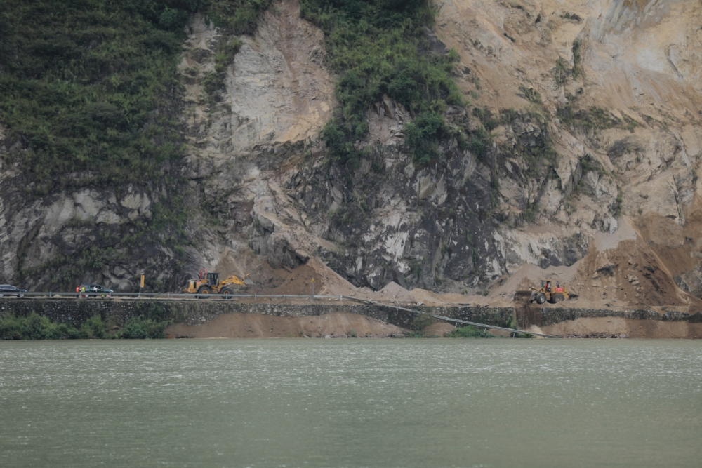 按照編輯部的報道提示,我重點關(guān)注震中持續(xù)降雨的影響。與交通搶險隊伍保持聯(lián)系后,我前往他們的搶險作業(yè)面采訪拍攝。