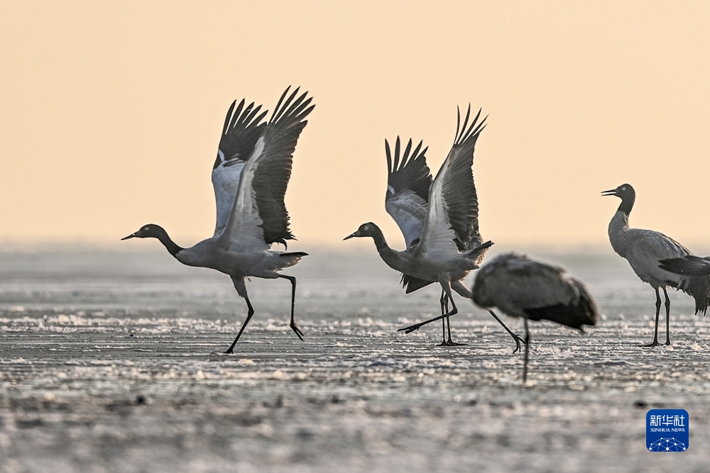 “只有人鳥共生,才能長遠(yuǎn)發(fā)展”,已成為眾多黑頸鶴保護(hù)地的共同理念。在甘肅尕海,周邊禁止采砂、退出采礦、禁牧休牧,湖泊告別三度干涸歷史,水域面積不斷擴大,黑頸鶴回歸翱翔;在云南大包山,當(dāng)?shù)貙嵤⒌厣鷳B(tài)修復(fù)項目,恢復(fù)濕地超過9000畝,為黑頸鶴預(yù)留更多棲息生態(tài)空間。