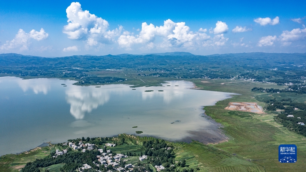 貴州草海國家級自然保護(hù)區(qū),退耕還湖成效明晰可見(2022年7月8日攝,無人機照片)。新華社記者 陶亮 攝
