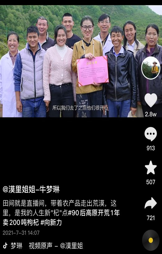 在整個2021年,牛夢琳賣出去了近100萬單,其中有200多噸枸杞,在短視頻平臺組織的年貨節(jié)期間,她更是在一晚上賣出了價(jià)值上百萬元的柴達(dá)木農(nóng)貨。