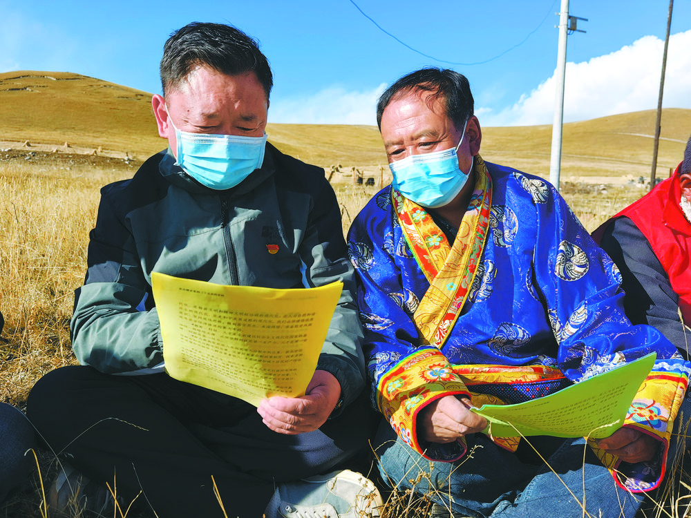 “只有自己學(xué)透,才能給群眾講透?!边@是海北藏族自治州門(mén)源回族自治縣蘇吉灘鄉(xiāng)黨委書(shū)記才仁洛加在鄉(xiāng)上的干部學(xué)習(xí)會(huì)上講過(guò)最多的一句話(huà)?!叭罕姸寂沃刹繉⒑谜邘н^(guò)來(lái),我們要傳達(dá)好二十大精神,不能讓群眾失望?!辈湃事寮诱f(shuō)。