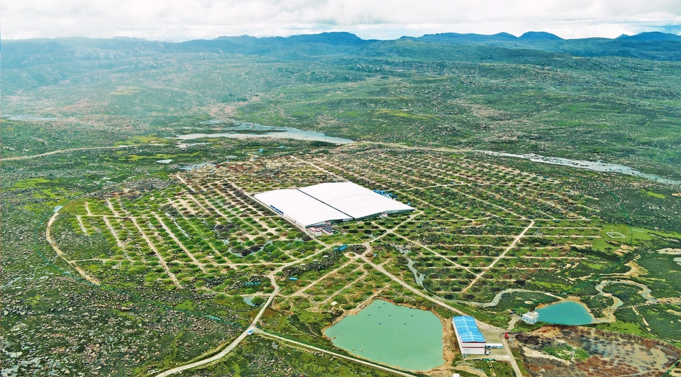 10月21日,科研人員行走在水切倫科夫探測器的屋頂上。遠(yuǎn)方的每個大概36平方米的土堆是拉索的繆子探測器,放置了裝有超純水的高反射率水袋。