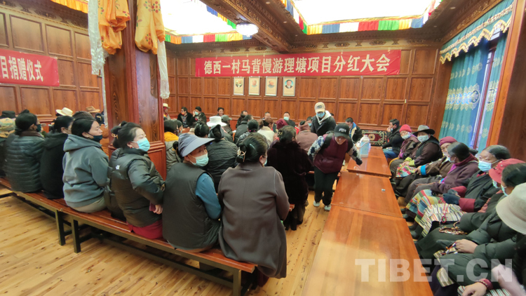 中國西藏網(wǎng)訊 11月10日,地處高寒的四川省甘孜州理塘縣一片冰天雪地。然而,在高城鎮(zhèn)德西一村活動中心,一場村民分紅大會卻熱火朝天進行著。拿到現(xiàn)金分紅的村民四郎卓瑪,專門到“馬背慢游理塘”項目的石刻前留個影。