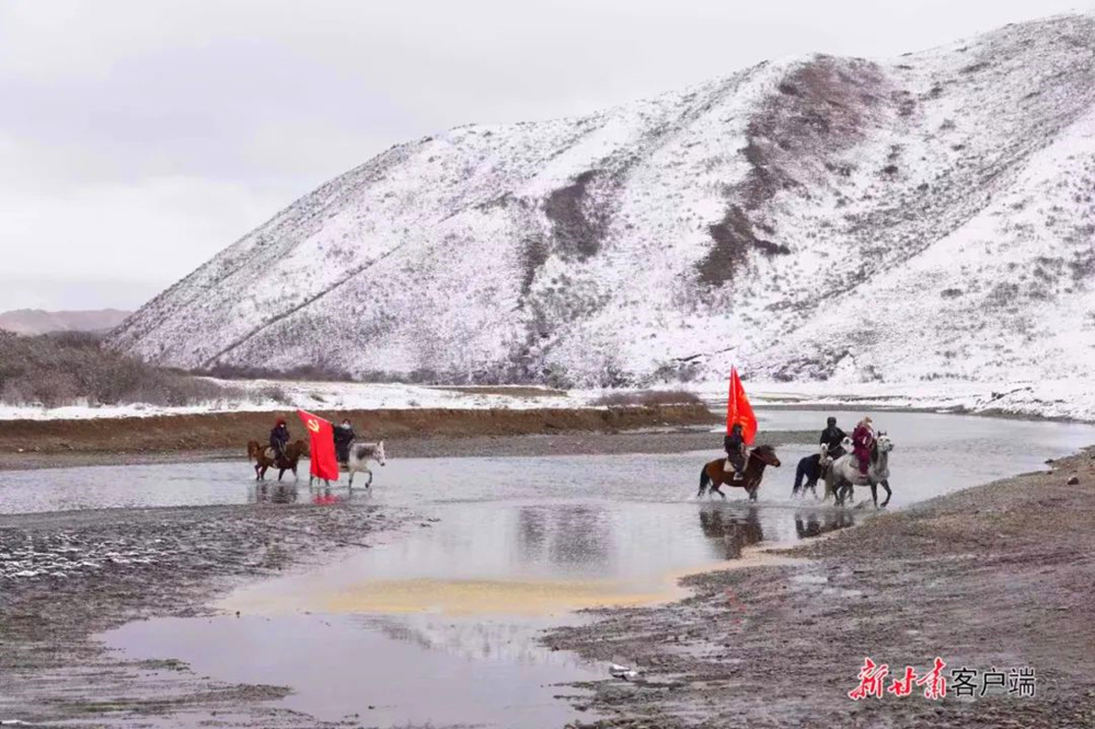 圖為宣講隊跋山涉水穿梭在各個牧場