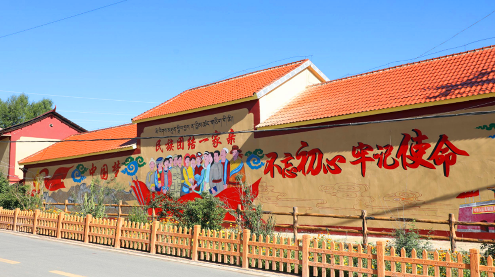 圖為甘南州合作市加拉尕瑪村民族團結文化墻