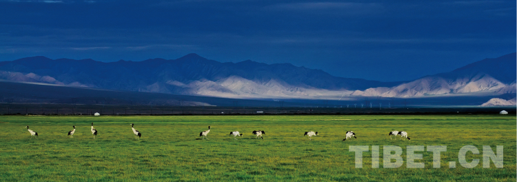 圖為“鳥類大熊貓”黑頸鶴在烏蘭縣東大灘徜徉