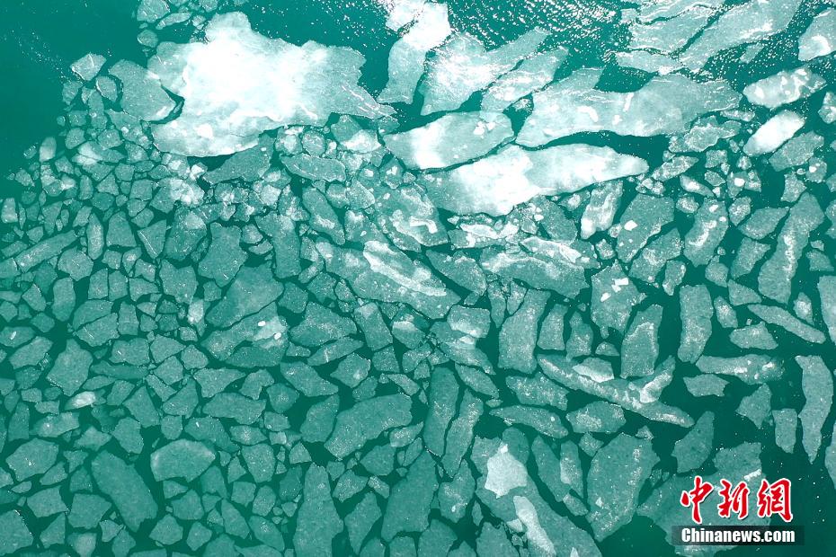 封凍的湖面如同破碎的“玉帶”,形成獨特的景觀。新華網(wǎng)發(fā)(宋忠勇 攝)