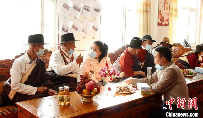 圖為同仁市社會(huì)福利服務(wù)中心的老年人講述自己的生活。馬芝芬 供圖