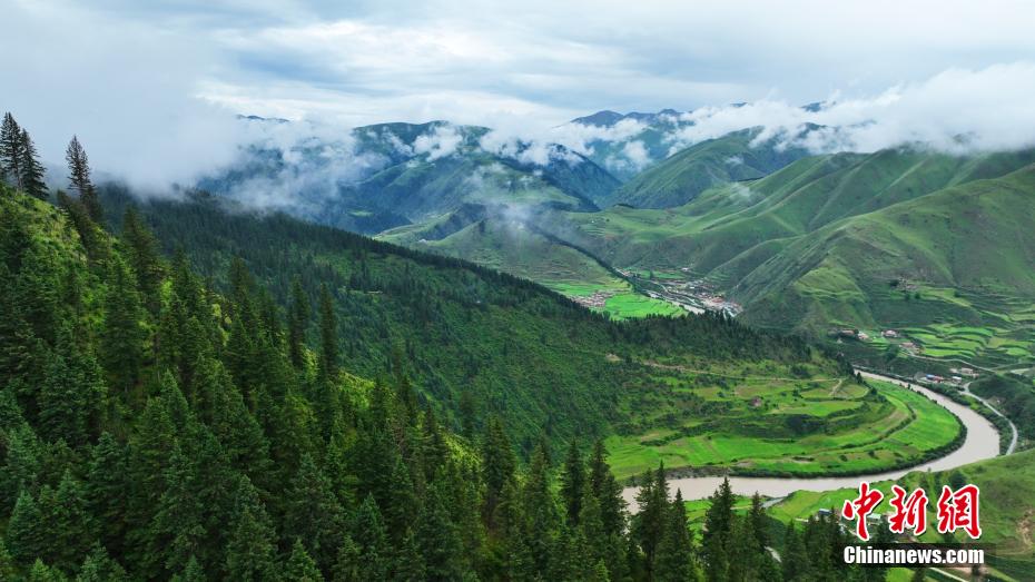 7月11日,一場降雨過后,云霧如潔白的哈達(dá)飄落在青海省果洛藏族自治州班瑪縣瑪可河國家森林公園山頭,與樹木、河流、梯田相互映襯,自然風(fēng)景美如畫。[詳細(xì)]