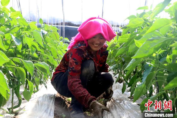 圖為農(nóng)戶在農(nóng)業(yè)基地里工作。 卻藏措 攝