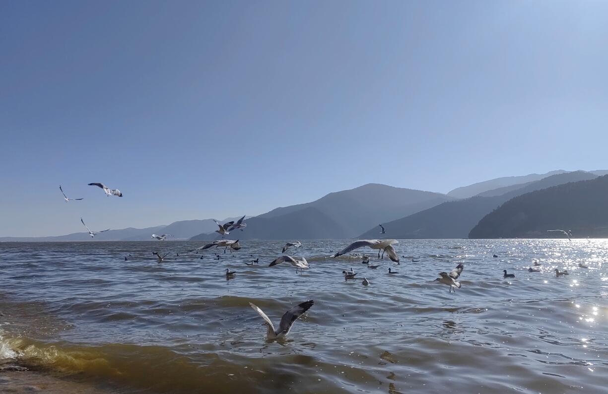 1月28日,記者在納帕海自然保護區(qū)看到成群的海鷗在這里盤旋飛舞,不少游客手托面包進行投喂,一幅幅人與自然和諧共生的美好畫卷徐徐鋪開。“第一次來香格里拉,看到不少游客在這里投喂海鷗,我也買一袋來試試?!庇慰屯蹊b詳說。