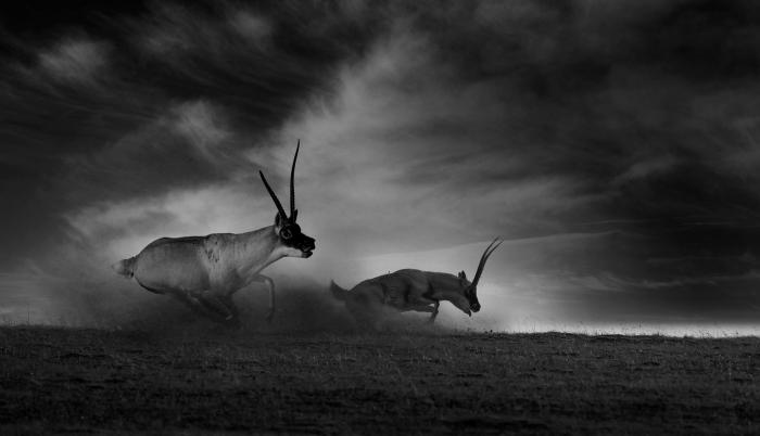 圖為焦生福作品《角逐》。青海省祁連山自然保護(hù)協(xié)會(huì)供圖