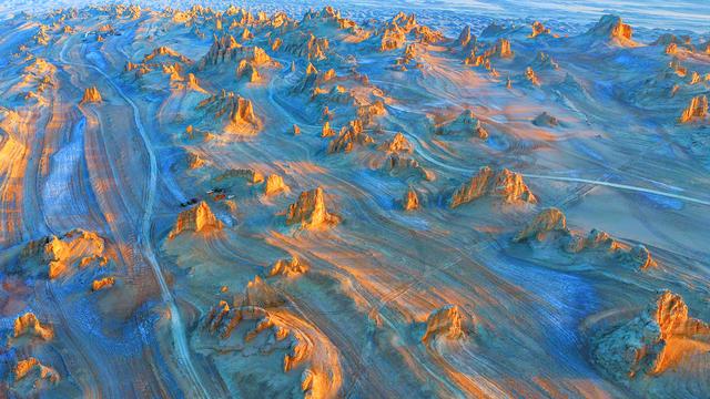細(xì)數(shù)茫崖美景,你會(huì)發(fā)現(xiàn)大自然對(duì)這片土地充滿了偏愛(ài)。艾肯泉仿佛大漠之中明眸善睞的眼睛,翡翠湖里成百上千個(gè)藍(lán)洞泉眼,只此青綠,千佛崖萬(wàn)年風(fēng)蝕卻各個(gè)栩栩如生,俄博梁雅丹地貌、星光大道戈壁、土星環(huán)沙丘,地表星辰和星辰大海組成的“外星球體驗(yàn)場(chǎng)”……正是這些絕美的自然奇觀讓茫崖在發(fā)展中開出新路徑、煥發(fā)出新氣象。