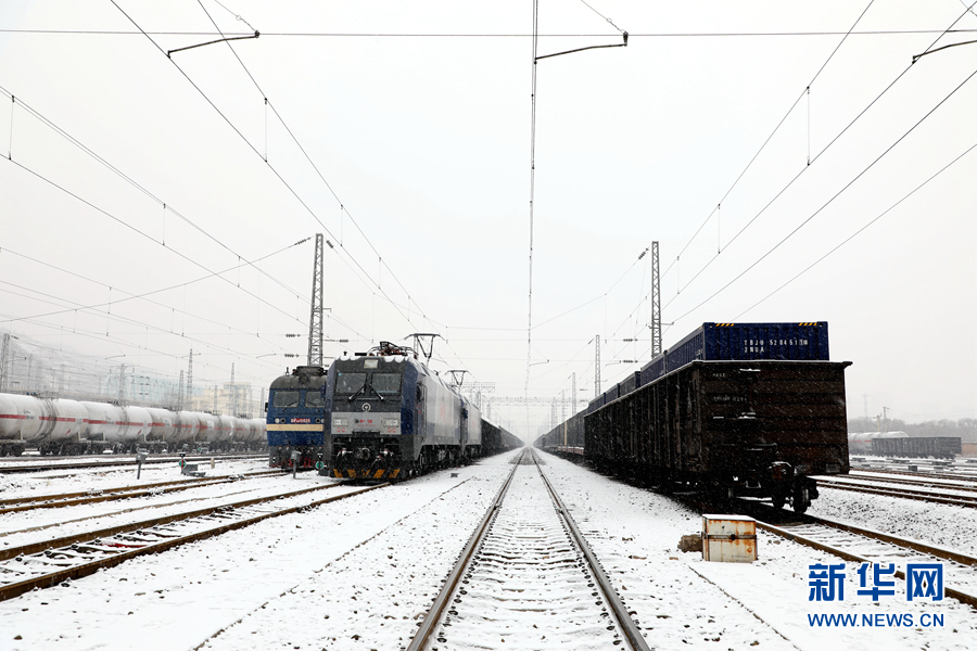 列檢人員在雪中等待列檢。新華網(wǎng) 鐵萬鋼 攝