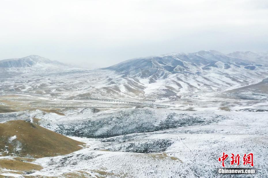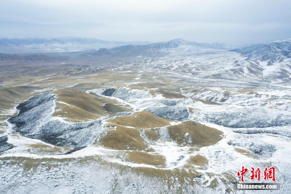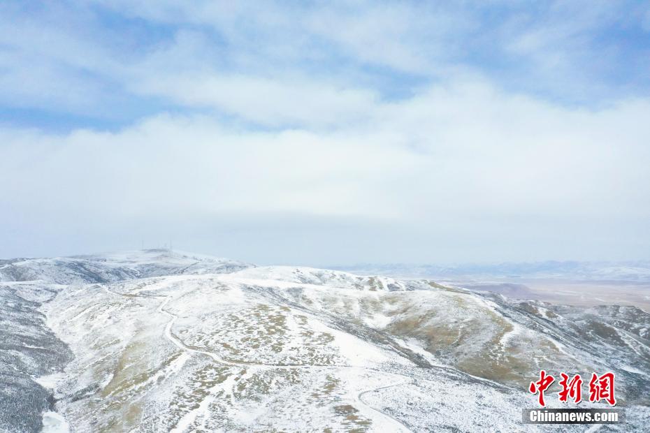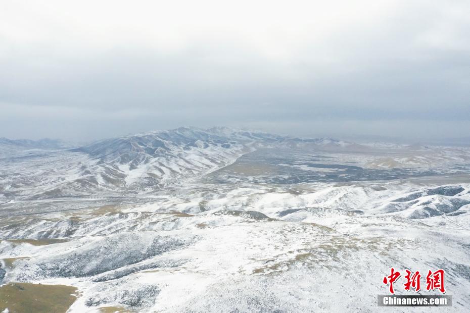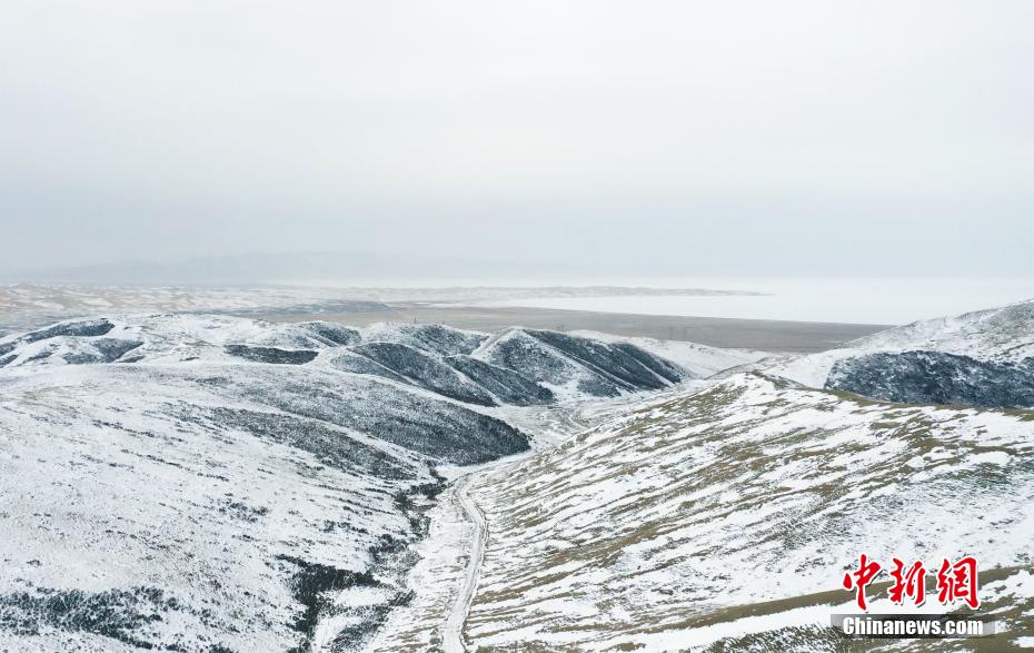 2月17日,航拍位于青海省海北藏族自治州海晏縣,祁連山脈同寶山壯美雪景。一場春雪過后,同寶山連綿的山巒被白雪覆蓋,遠處的青海湖若隱若現(xiàn),盡顯壯美。