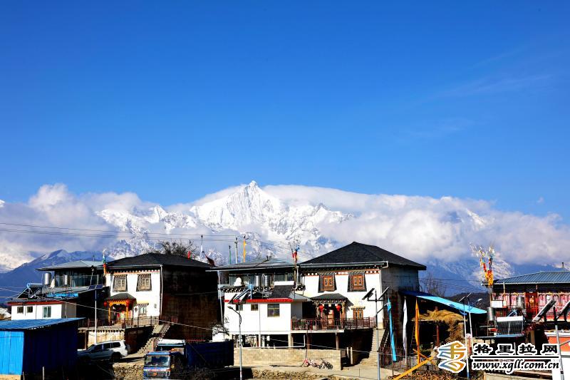 德欽縣升平鎮(zhèn)霧濃頂小組與雪山相鄰,村里的藏式民居與雪山相映成趣,煞是好看。