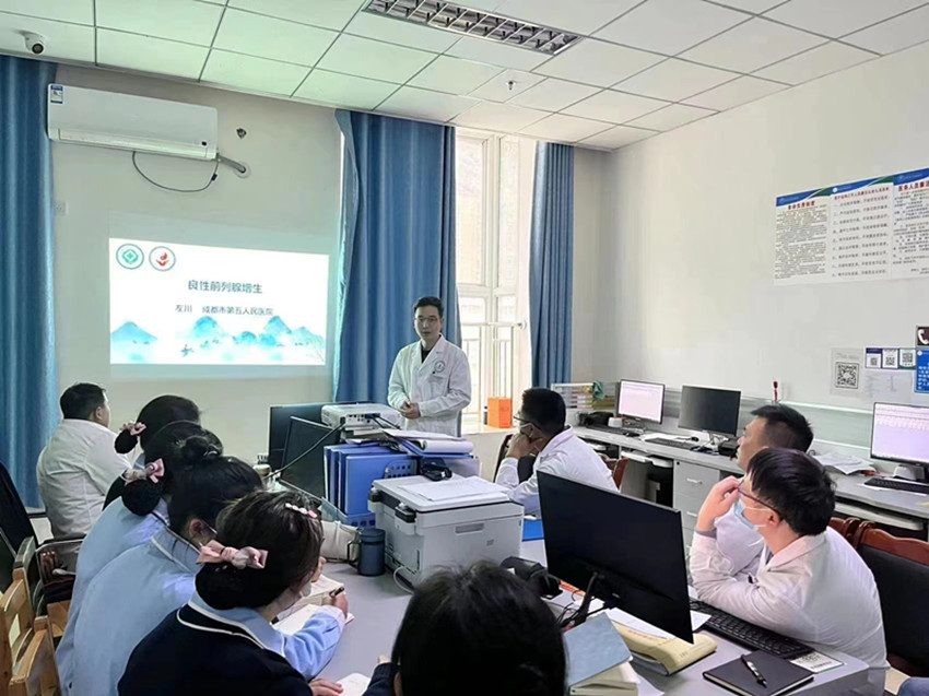 今年1月,成都市第五人民醫(yī)院泌尿外科左川主治醫(yī)師來(lái)到甘孜衛(wèi)校附屬醫(yī)院開(kāi)始對(duì)口支援工作。工作期間,他積極帶領(lǐng)外科團(tuán)隊(duì)開(kāi)展診療工作,每月與同事開(kāi)展學(xué)術(shù)交流講座,探討新技術(shù),深受大家歡迎。