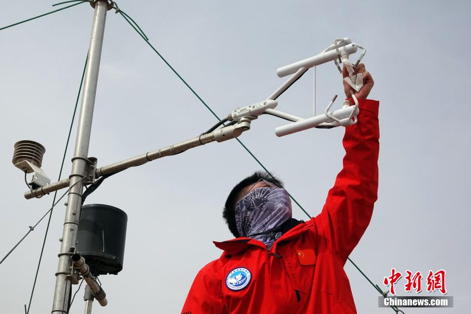 圖為第二次青藏科考隊(duì)員、中科院空天院博士生周丁旺在觀測(cè)站開展科研設(shè)備維護(hù)工作。孫自法 攝