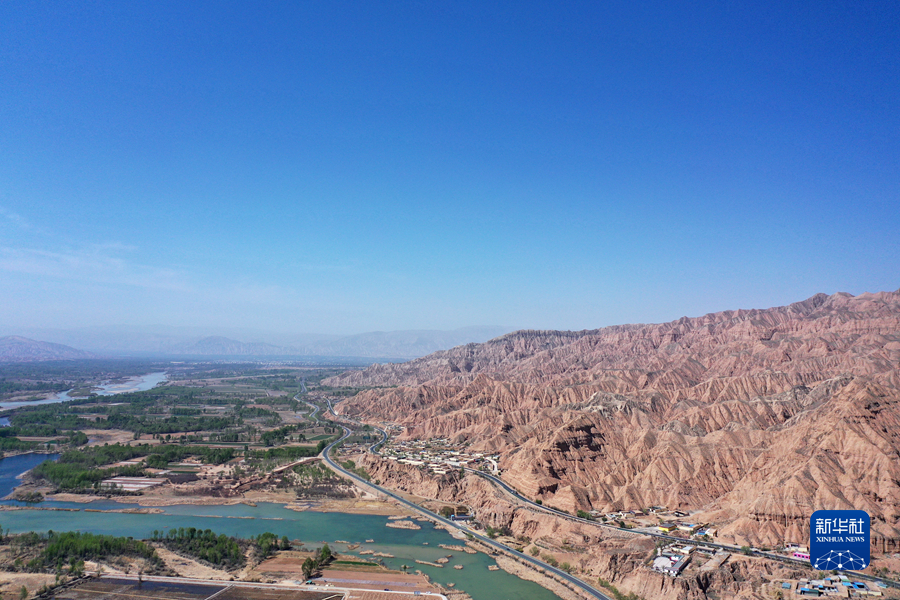這是4月17日拍攝的青海省海南藏族自治州貴德縣境內(nèi)的丹霞地貌(無(wú)人機(jī)照片)。新華社 耿輝凰 攝