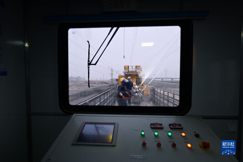 青藏鐵路從青海省海西蒙古族藏族自治州的察爾汗鹽湖橫穿而過,這一段約33公里的線路被稱為“萬丈鹽橋”。春季大風(fēng)不僅揚(yáng)沙,還會揚(yáng)起察爾汗鹽湖的鹽,鹽污會在接觸網(wǎng)絕緣子表面附著,降低絕緣子的爬電距離,遇到雨雪天氣放電,造成接觸網(wǎng)大面積跳閘,影響青藏鐵路正常行車。近年來,西寧供電段加大科技投入,清洗方式由原來的使用抹布、噴水壺、小型清洗機(jī)轉(zhuǎn)變?yōu)楦邏核畼專行嵘鳂I(yè)效率。