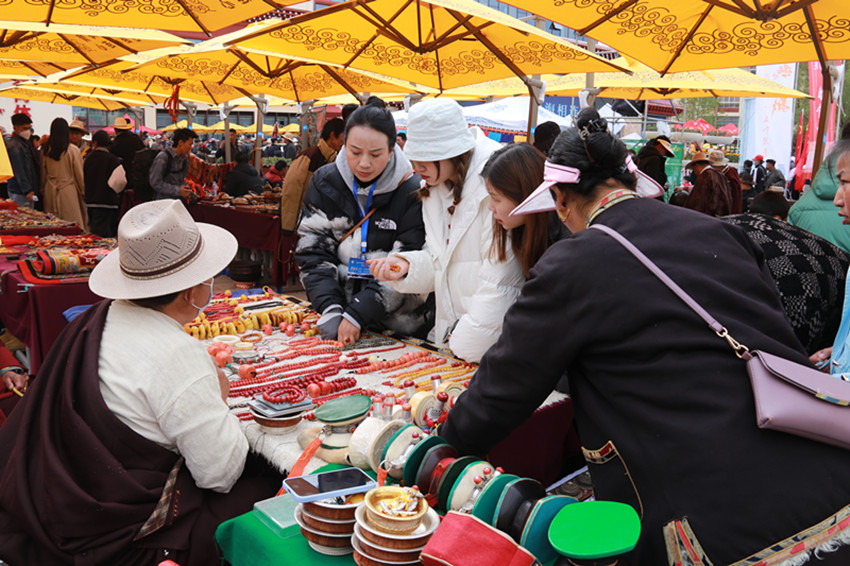 “這個(gè)銅鍋?zhàn)畹投嗌倌艹觯俊薄斑@個(gè)藏刀上面的珠子是真的么?”……整整一天,羅布林廣場(chǎng)門庭若市、人聲鼎沸,詢問聲、報(bào)價(jià)聲、討價(jià)聲充斥在市集各個(gè)角落。來自甘肅省甘南州卓尼縣的商人嘎藏在古玩交易博覽活動(dòng)展覽兩日,就達(dá)成26萬元的交易額。據(jù)他介紹,從受邀參加活動(dòng)到現(xiàn)場(chǎng)展示,都有當(dāng)?shù)毓ぷ魅藛T聯(lián)系對(duì)接,不僅免費(fèi)提供展位,還有公安干警現(xiàn)場(chǎng)維護(hù)安全和秩序,更有當(dāng)?shù)卣刻焖蛠砦绮?、晚餐和飲用水,參加此次古玩交易博覽活動(dòng)很安心、舒心和放心。