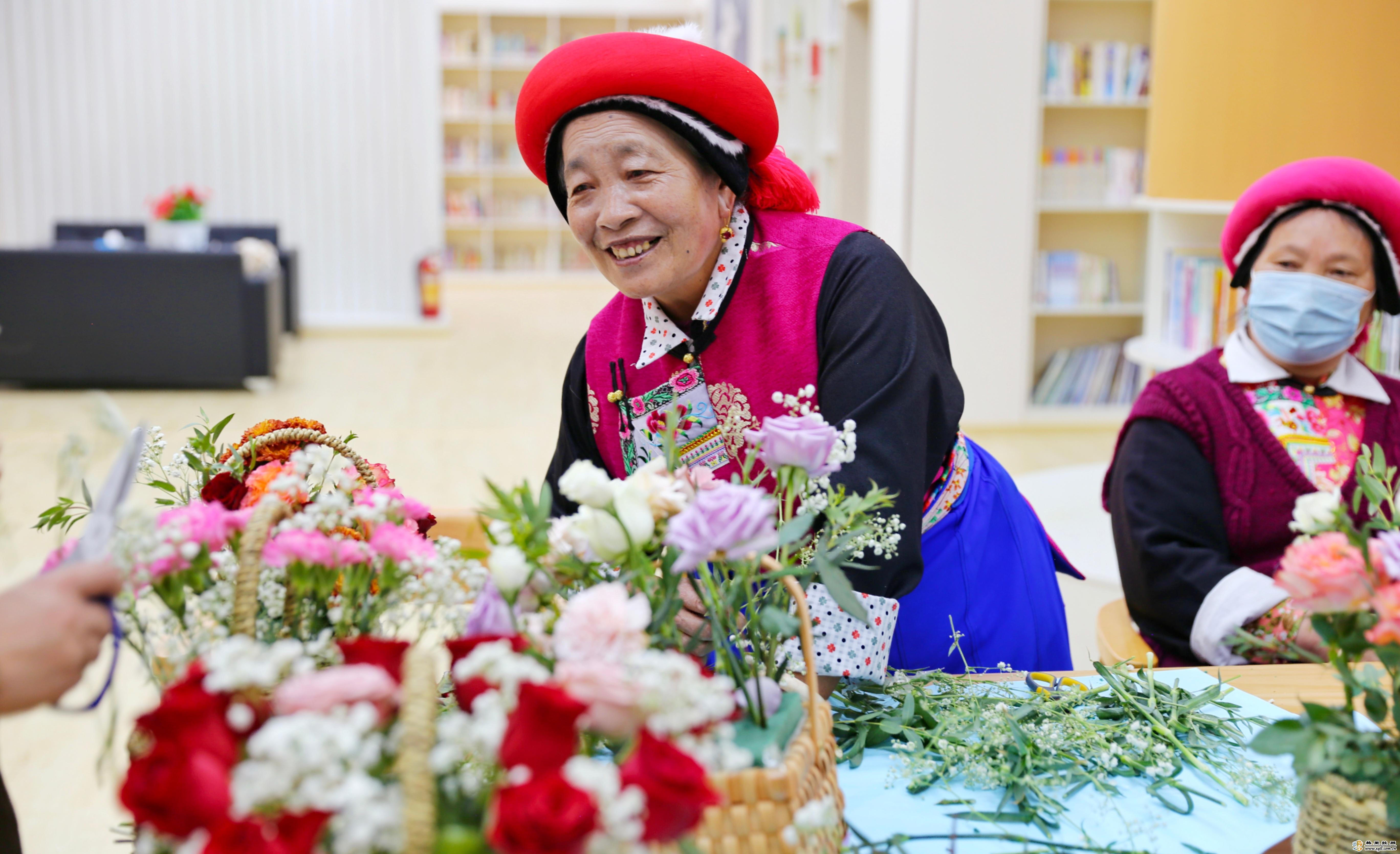 隨后,還組織媽媽們學習了插花手藝,活動室內(nèi)充滿了鮮花的芬芳和大家的歡聲笑語。
