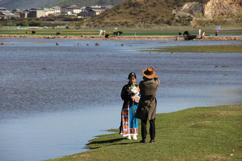 伴隨著立夏過(guò)后的第一場(chǎng)雨雪,迪慶高原綠意更濃。納帕海湖畔更添一分高原夏日氣息,碧藍(lán)的湖水、翠綠的草原和自由行走在草原上的牛羊是高原獨(dú)特的風(fēng)景線。深深吸引著來(lái)自五湖四海的游人駐足觀賞。雖然“五一”假期已過(guò),但前往納帕海游玩的游客并沒(méi)有減少,不少游客表示是特意前往這里感受草原風(fēng)光、拍照留念的。