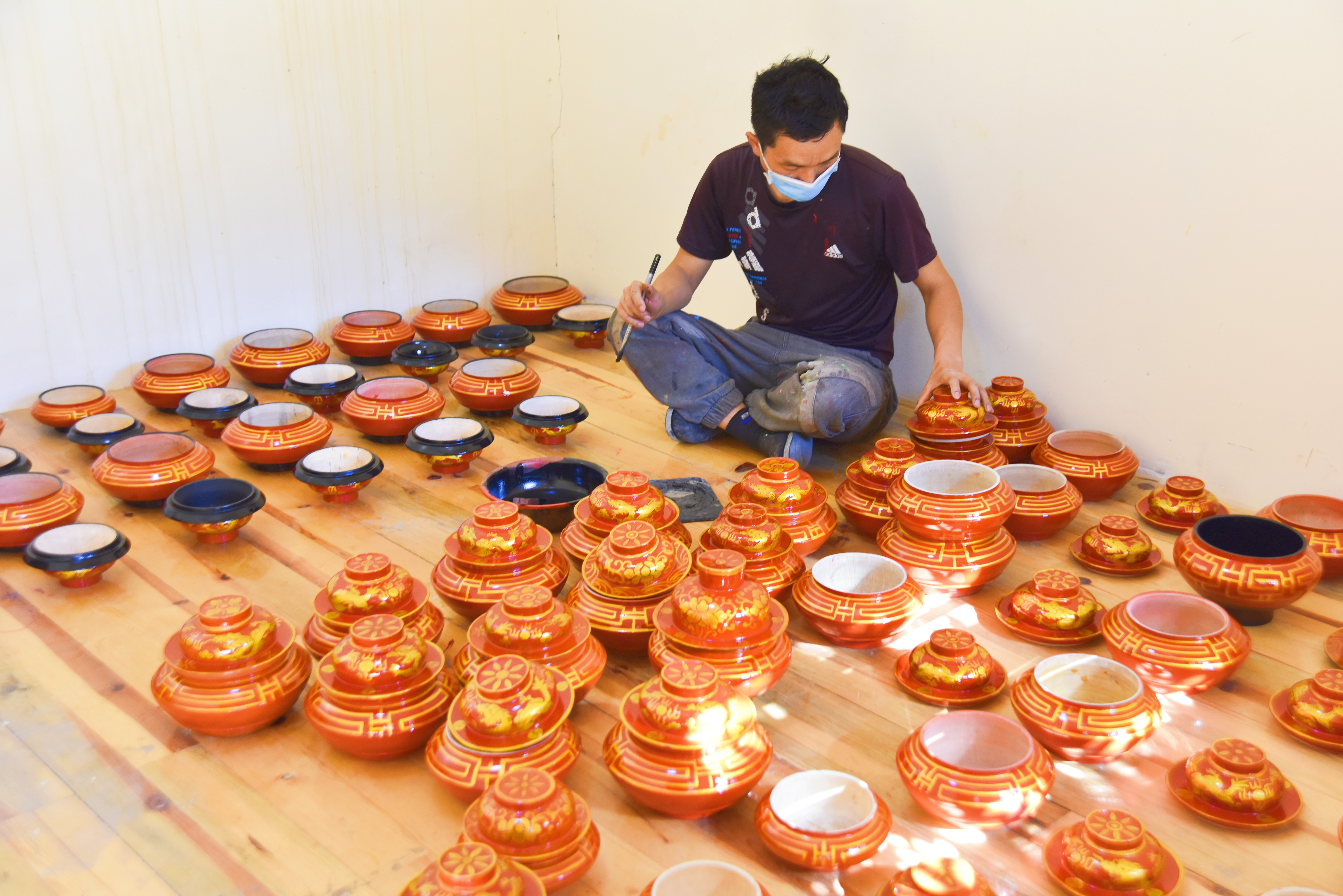 走進(jìn)德欽縣奔子欄鎮(zhèn)益西藏文化產(chǎn)業(yè)有限公司,手工藝人們正有條不紊地加工著藏式木碗。作坊里,有的正在精心進(jìn)行手工打磨,有的一手托碗一手用畫筆為上好底漆的木碗描上極具藏族特色的紋飾。