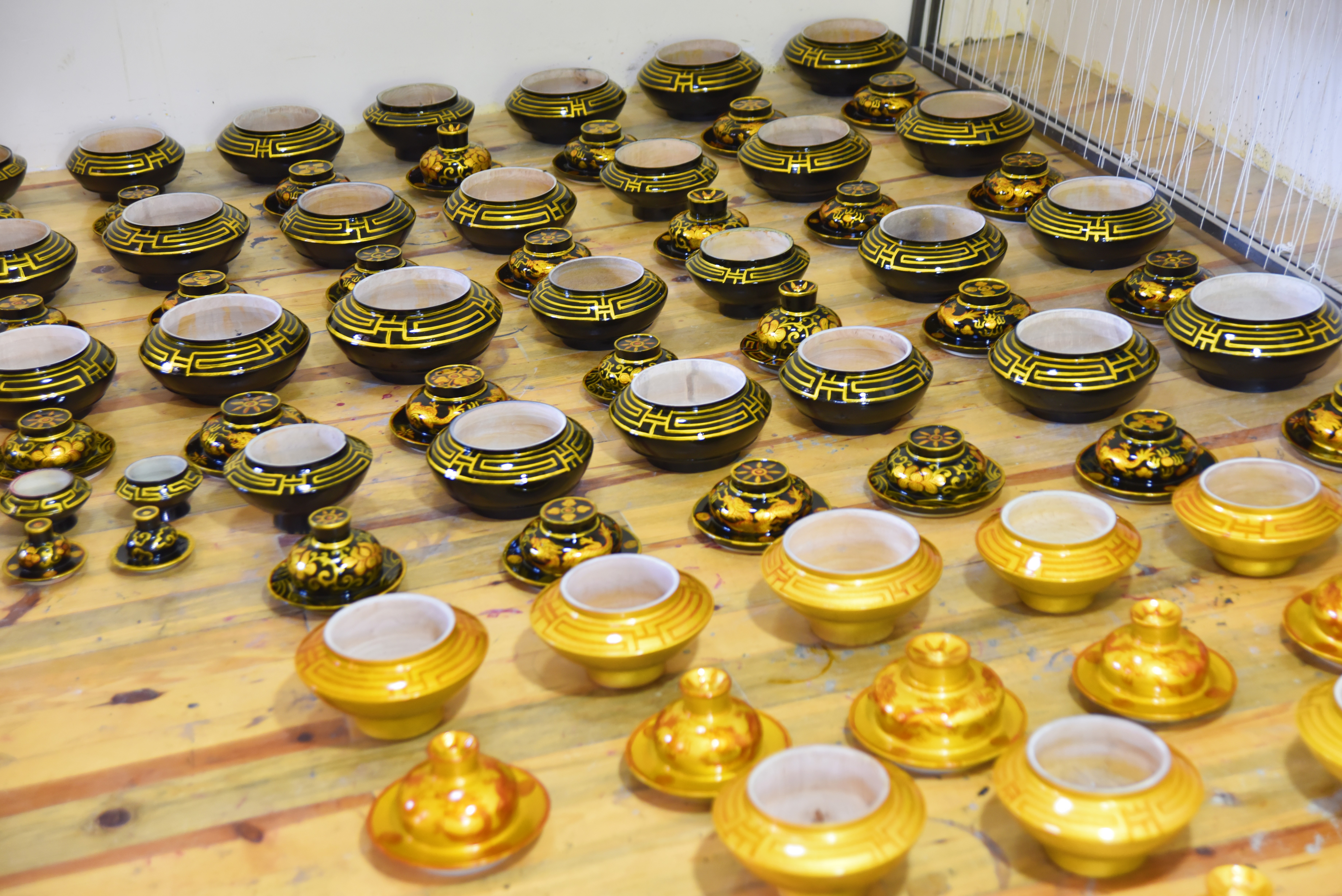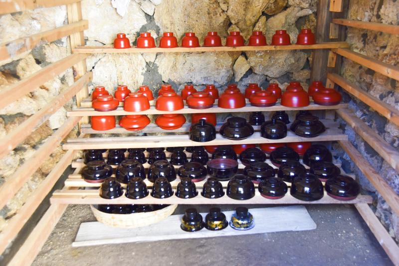 木碗的整個制作過程需要20多道工序,其中,上漆時使用的是天然土漆。刷漆后直接放到專門的地窖里陰干。