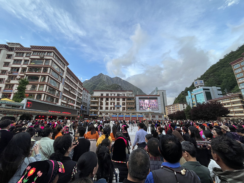 5月26日傍晚,康定情歌廣場的千人鍋莊將“四月八”跑馬山轉山會的熱烈氣氛推向了高潮。