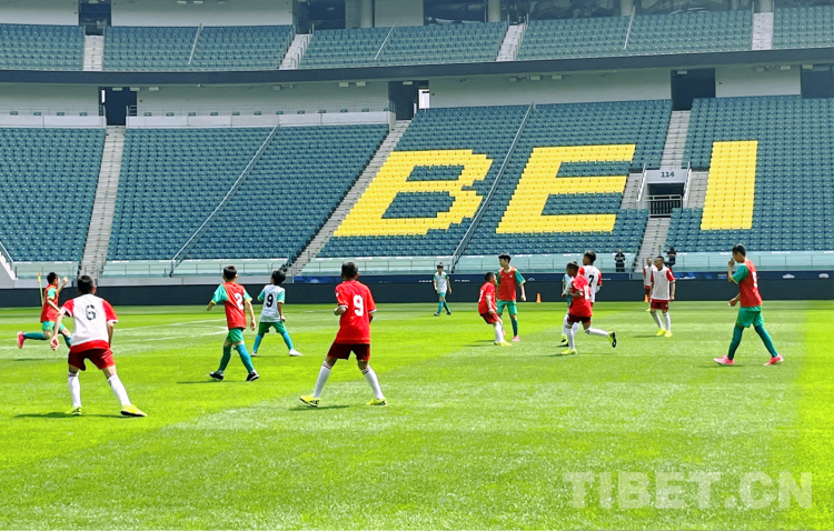 圖為玉樹少年們在工人體育場與北京國安少年足球隊一起訓(xùn)練交流比賽 攝影:王茜