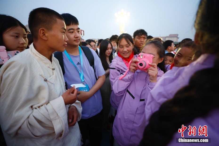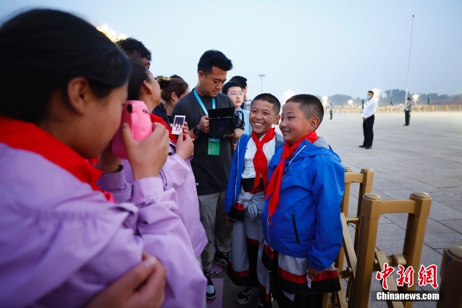 圖為青少年在天安門廣場看升旗。中新社記者 富田 攝