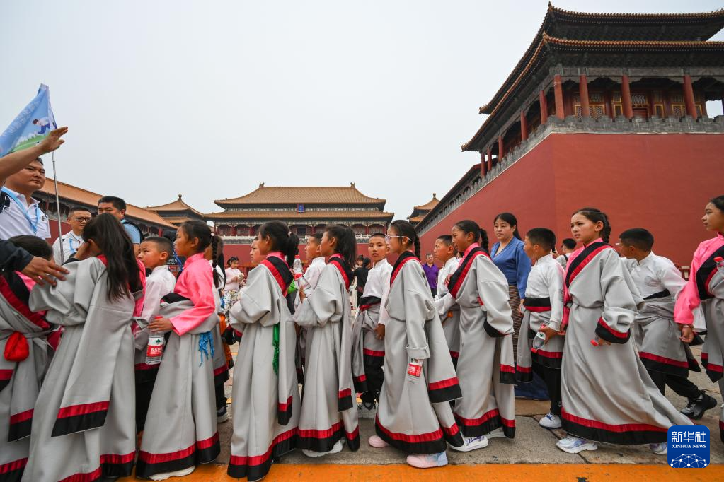 5月31日,來自青海省玉樹州的孩子們在北京故宮博物院外排隊等候進入參觀。新華社記者 陳曄華 攝