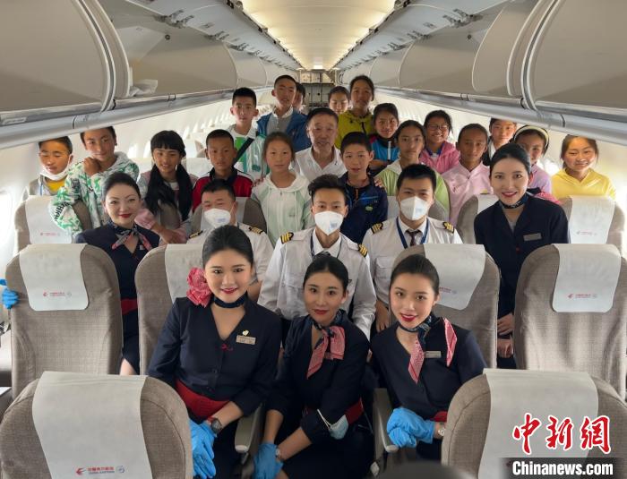 圖為藏族小朋友們跟機組合影留念。東航甘肅分公司供圖