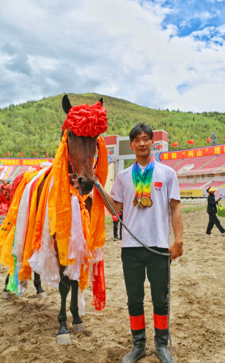 三天來,香格里拉五鳳山賽馬場內(nèi)人頭攢動,熱鬧非凡,州內(nèi)各族群眾和游客從四面八方聚集而來,為三年未能出現(xiàn)在香格里拉端午賽馬現(xiàn)場的駿馬和騎手們搖旗吶喊、加油助威,而來自州內(nèi)及友鄰州市的各代表隊則不負眾望,為大家呈現(xiàn)了一場場熱血沸騰的高水平馬術(shù)競技?!拔覐?5歲開始參加比賽,今年是收獲最大的一次,連獲了4枚金牌,我很高興,期待明年的端午節(jié)能再次與來自不同地方的選手切磋。”23歲的知詩定主說道。此次,他獲得了甲組1000米走馬、甲組3000米走馬、乙組3000米走馬、丙組1000米走馬賽冠軍。與他并駕齊驅(qū)的嘎提七林則在甲組5000米速度賽、丙組5000米速度賽、甲組3000米速度賽、乙組3000米速度賽中獲得金牌。