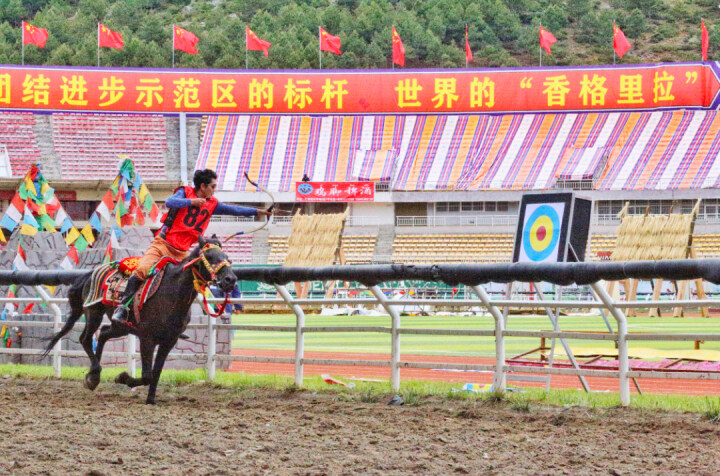 大理代表隊是此次參加跑馬拾哈達及跑馬射箭的唯一友鄰馬隊,該隊選手陸院章、余利剛在跑馬射箭項目中也獲得了第三、四名的好成績?!按罄砗偷蠎c都是云南省馬術(shù)比賽的主力,香格里拉的端午賽馬節(jié)我們每年都來參加,大理的三月街賽馬大會迪慶隊也不會缺席,多年來我們相互交流馬術(shù),結(jié)下了深厚的友誼,雖然此次我們沒有獲得最好的成績,但三年未能來香格里拉端午賽馬節(jié)的遺憾補上了,能夠再續(xù)雙方民族、區(qū)域之間割不斷的情誼,很值得!”大理代表隊領(lǐng)隊余利邦表示。