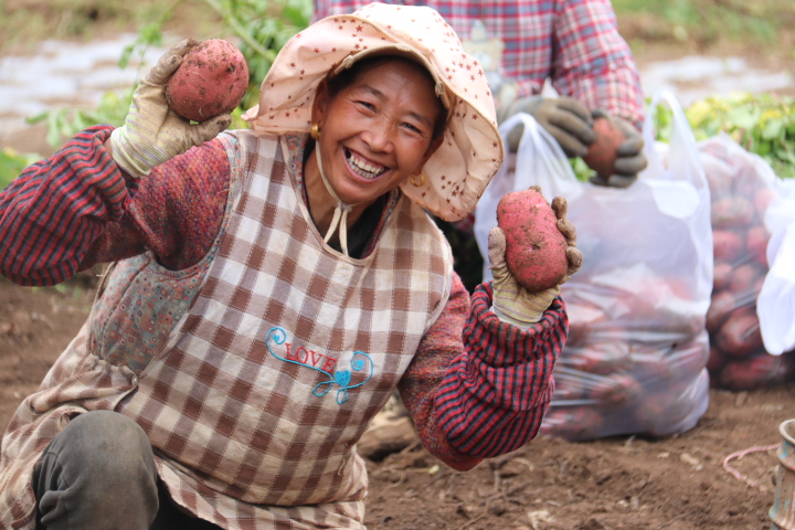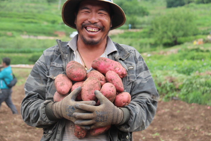 “以前我們種植傳統(tǒng)農(nóng)作物,收入低下,現(xiàn)在在政府的引導(dǎo)下,大規(guī)模種植洋芋,黨委政府還為我們解決銷(xiāo)售后顧之憂(yōu),收入成倍增加?!闭谔镩g勞作的村民孫諾江初笑呵呵地說(shuō)。