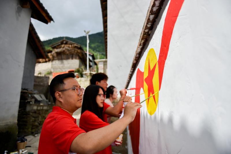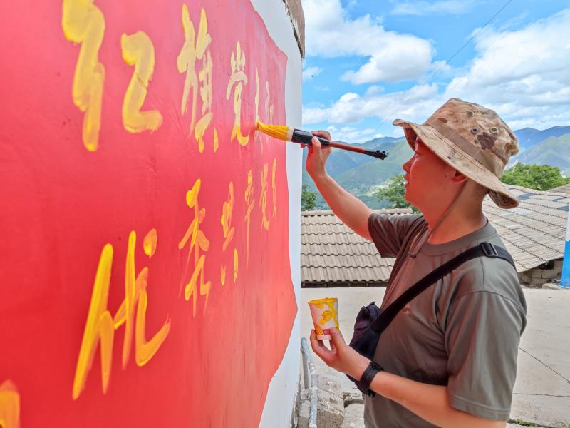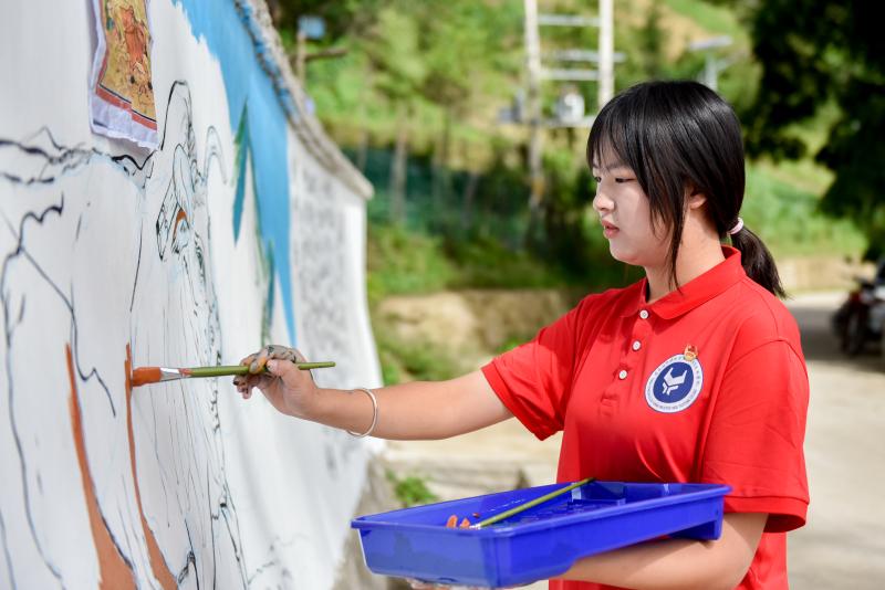 環(huán)境提升美人心。學(xué)院建筑與工藝技術(shù)系及院團(tuán)委師生共20人到定點幫扶點拉日村阿尺瑪?shù)走M(jìn)行鄉(xiāng)村風(fēng)貌美化工作,開展以黨建、推廣普通話及傈僳族文化為主題的墻面繪畫,累計完成400平米的墻繪,推動農(nóng)村人居環(huán)境提升,讓鄉(xiāng)村面貌煥然一新。