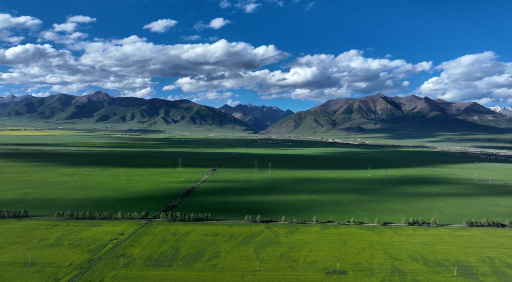 這是7月3日拍攝的門源縣境內(nèi)風(fēng)光(無(wú)人機(jī)照片)。新華社記者 韓方方 攝