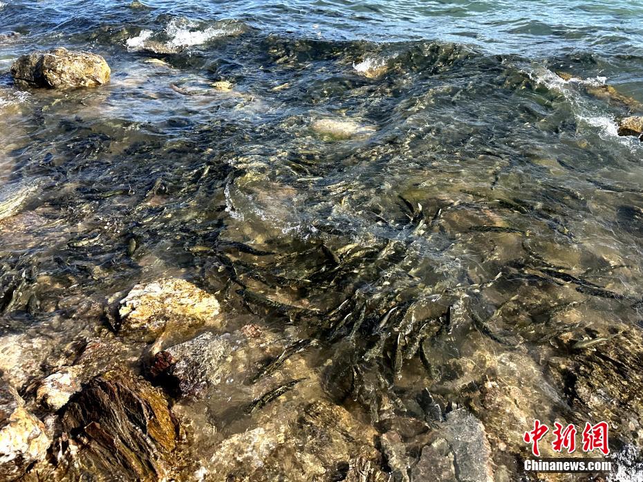 青海湖斷崖湟魚(yú)密集扎堆 游客如梭一覽奇景