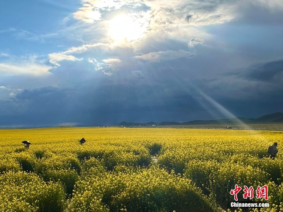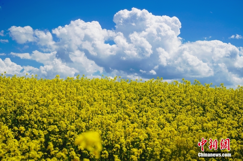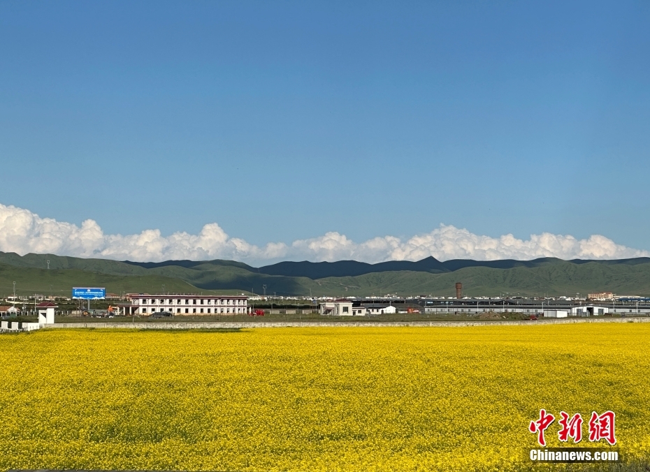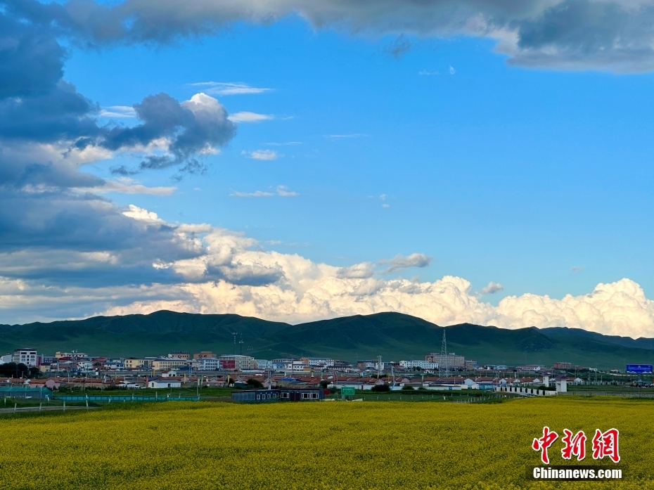 盛夏七月,在四川省阿壩藏族羌族自治州若爾蓋縣唐克鎮(zhèn)白河牧場(chǎng),一片萬(wàn)畝油菜花開(kāi)得正艷。據(jù)若爾蓋縣科學(xué)技術(shù)和農(nóng)業(yè)畜牧局副局長(zhǎng)徐建平介紹,與平原內(nèi)陸地區(qū)不同的是,地處若爾蓋高原的白河牧場(chǎng),種植的是春油菜,一般5月中旬播種完成,6月底至7月份正是油菜花盛開(kāi)的季節(jié)。錢(qián)姣姣 攝