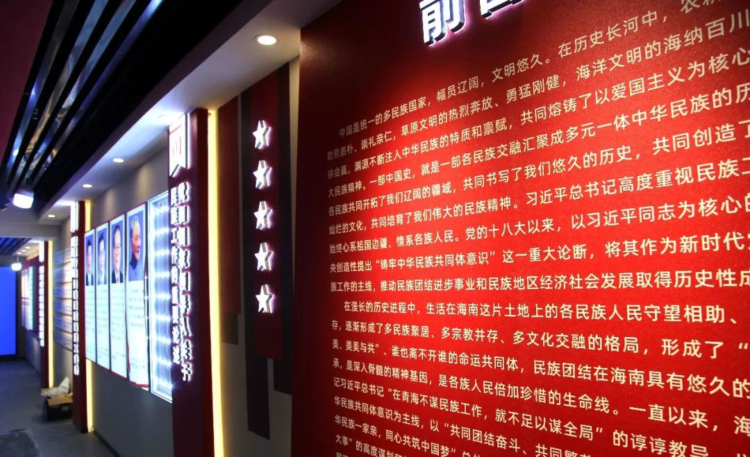 體驗館由“淵源流長、共同書寫海南悠久歷史”“命運與共、共繪中華民族共同體底色”“團結奮斗、共建中華民族共同體”“人杰地靈、共同孕育圣潔海南”“繼往開來,共圓偉大復興中國夢”五個篇章十八個單元組成,展陳布局完整、內(nèi)容新穎、特色鮮明,是展示海南悠久歷史的“隧道”、改革發(fā)展成果的“窗口”、參觀學習交流的“平臺”、各民族交往交流交融的“陣地”。