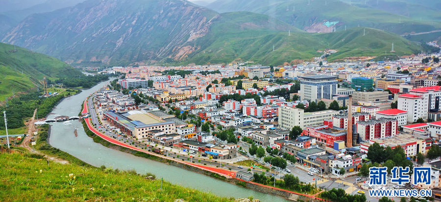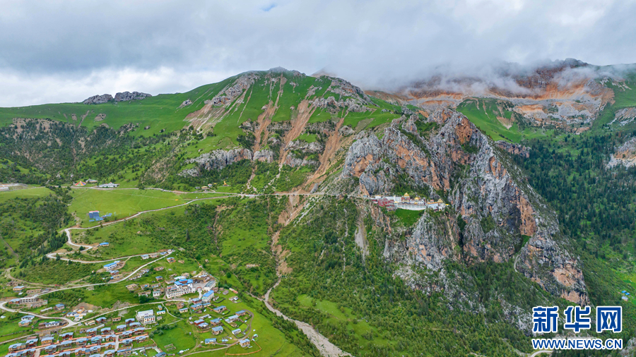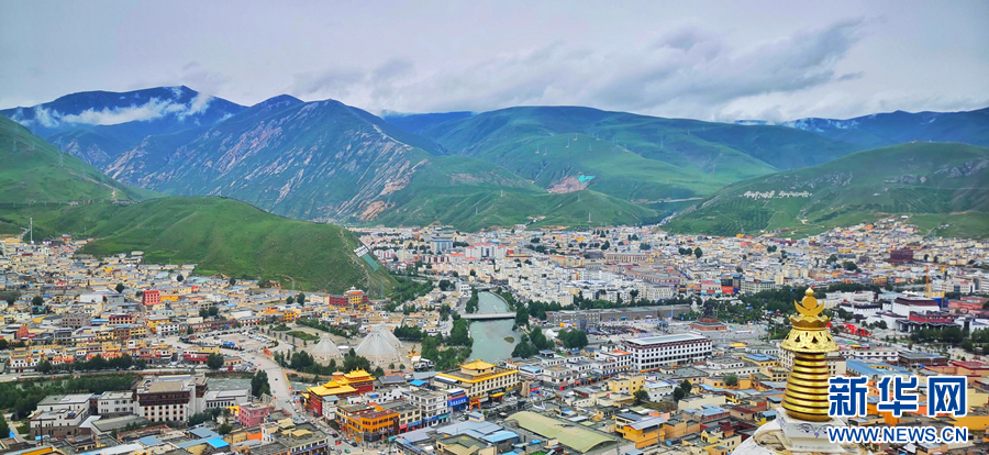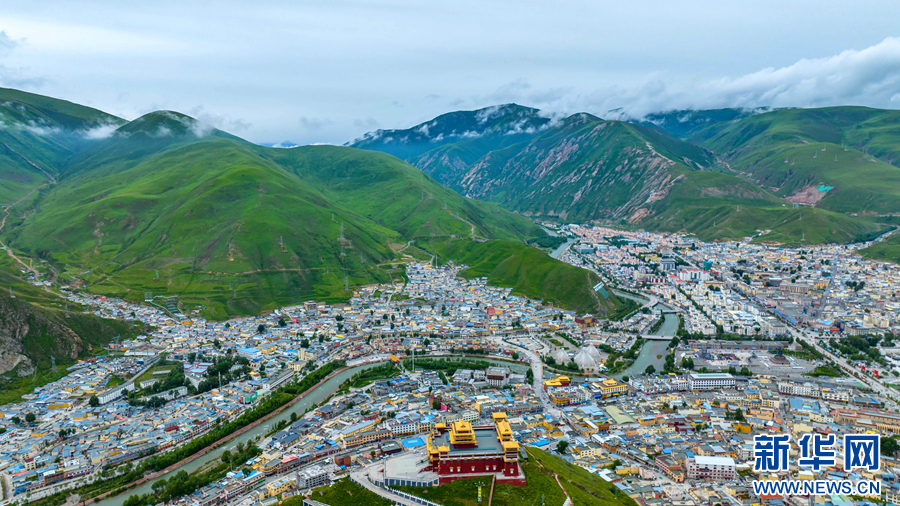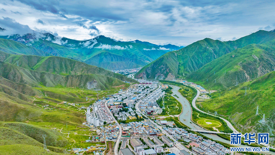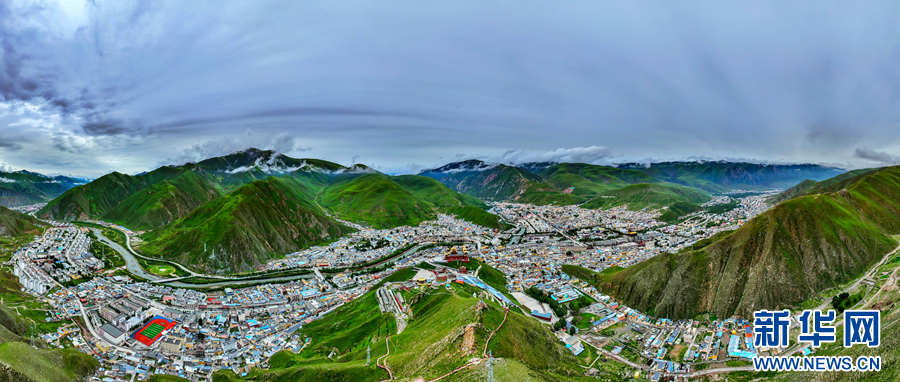 圖為青海省玉樹藏族自治州玉樹市的夏日風(fēng)光(無(wú)人機(jī)全景照片)。新華網(wǎng) 宋忠勇 攝