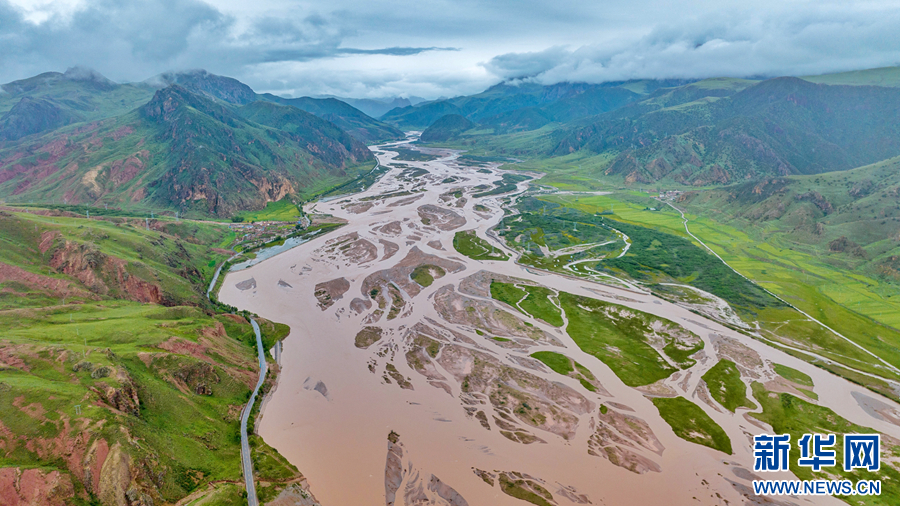 圖為在青海省玉樹藏族自治州囊謙縣境內(nèi)拍攝的夏日風(fēng)光(無(wú)人機(jī)照片)。新華網(wǎng) 宋忠勇 攝