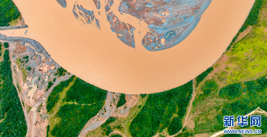 圖為在青海省玉樹藏族自治州雜多縣境內(nèi)拍攝的扎曲河(無(wú)人機(jī)照片)。新華網(wǎng) 宋忠勇 攝