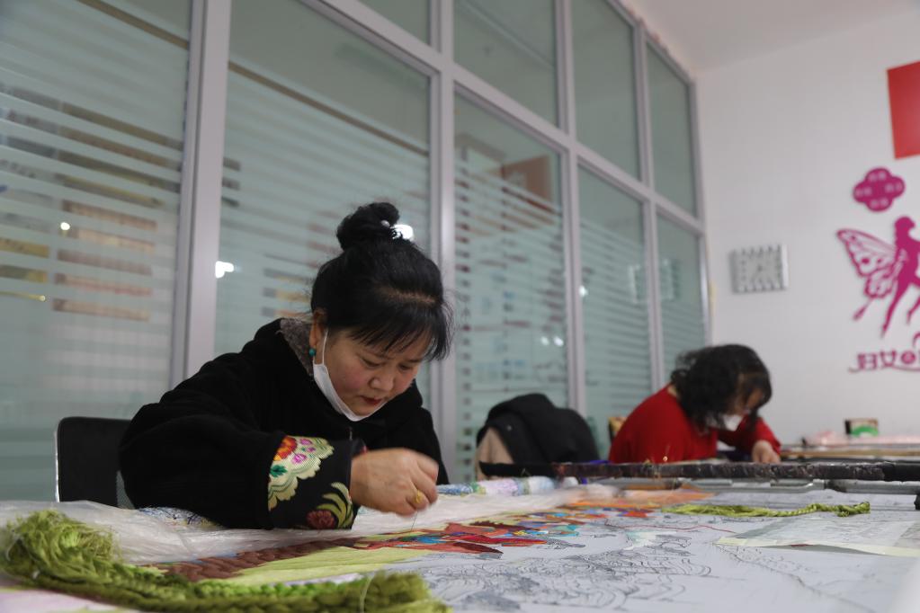 圖為繡娘在繡制藏繡作品。薛蒂 攝