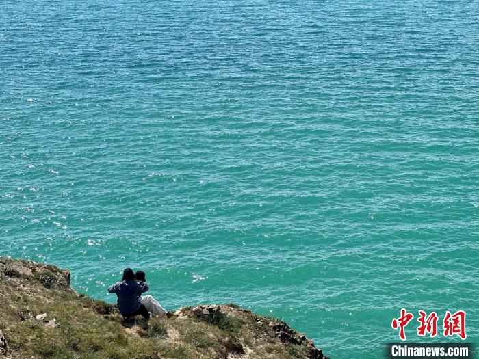 8月1日,記者拍攝到湛藍(lán)的鄂陵湖宛如藍(lán)寶石鑲嵌在群山之中,煙波浩渺、波瀾壯闊。